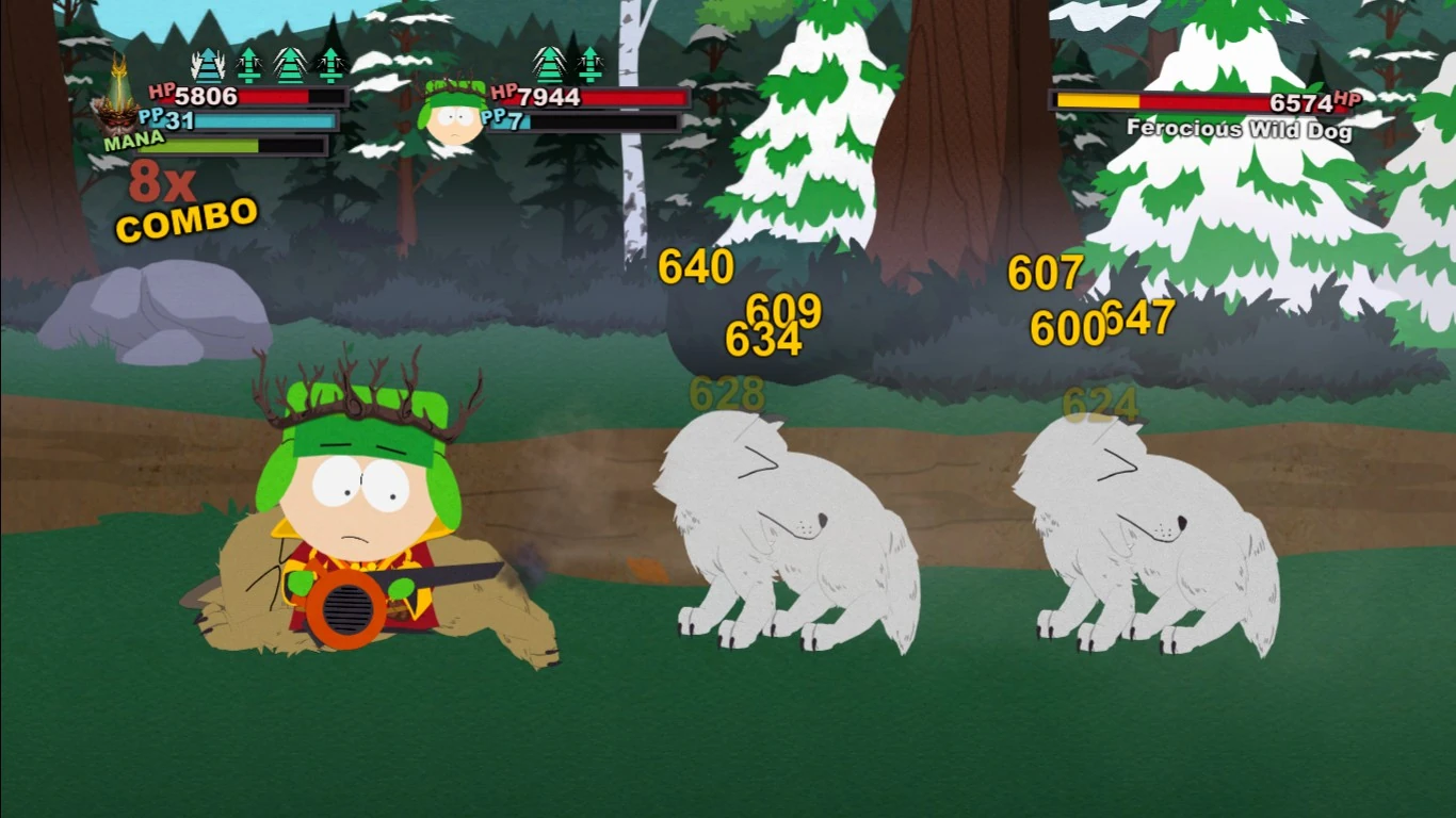 Kyle becomes available as an ally after "Defeat the Underpants Gnomes" is completed. He is an above-average ally, with many powerful attacks and high HP, including his Holy-infused basic attack like with Butters when done Perfectly. His special attacks can be difficult to pull off correctly, but are highly rewarding when mastered. In the end, Kyle makes an excellent end-game ally, but low reaction time is easily punished when using him.
