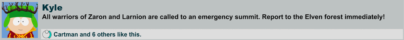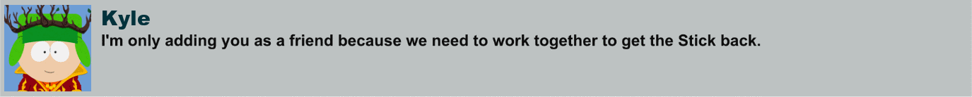 Kyle Broflovski is the leader of the Drow Elves and is one of the six playable partners in South Park: The Stick of Truth. His official title is High Jew Elf King Kyle.