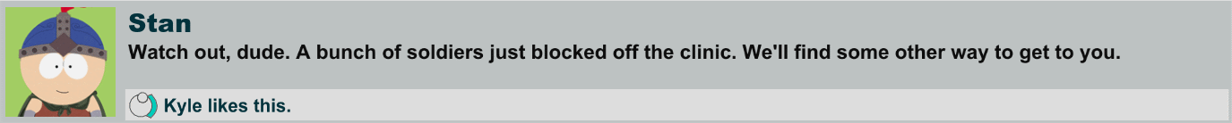 - Stan makes a reference to his line "Oh, my God! They killed Kenny!" when defeating Nazi Zombie Princess Kenny the first time.